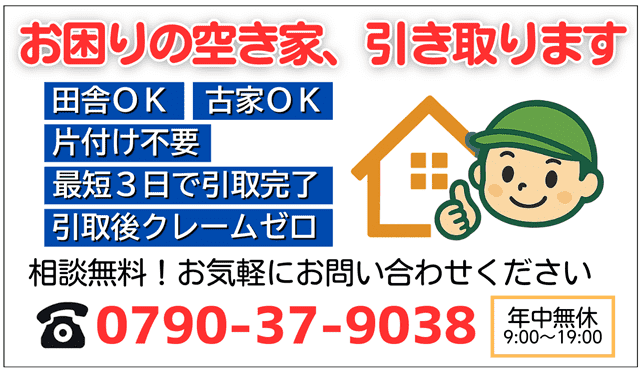 播磨地域専門の空き家引き取りサービス。他社で断られた家でも喜んで引き取ります!